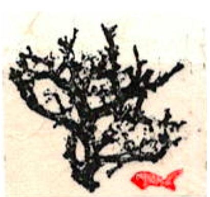 Une impression de lichen et taille d’épargne imprimée sur papier de chanvre contre-collé sur calque de 4×4 cm.
